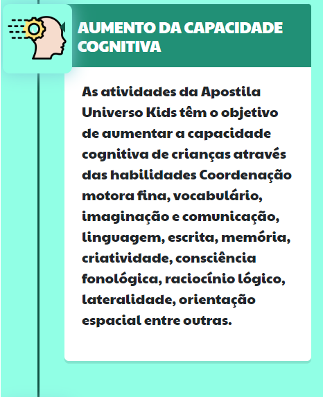 O Universo Kids é um material digital em PDF com +600 atividades focadas em uma alfabetização acelerada de 4 semanas. O kit foi desenvolvido por uma equipe de pedagogas especializadas em alfabetizar crianças com pouco foco, falta de memorização e que estejam atrasadas.