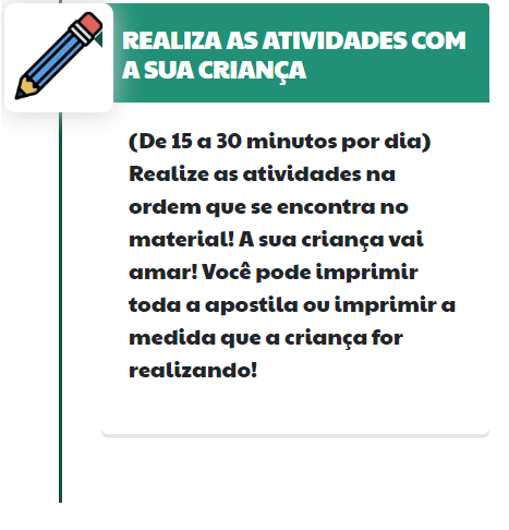 Separamos os melhores bônus para você! São atividades de caligrafia, Pontilhados Divertidos e um Quadro de Rotinas maravilhoso para organizar a rotina do seu filho (a).